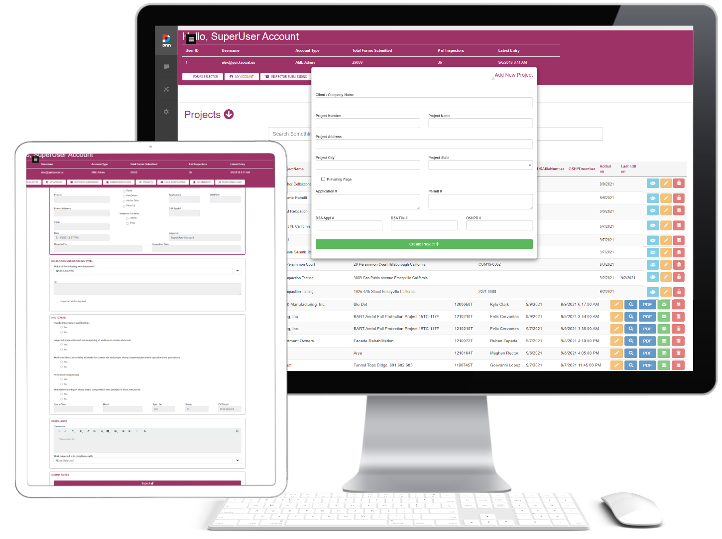 Engineers, contractors and surveyors make precise decisions and by the nature of their profession they need reliable, secure and precise tools that can be portable as they are in and out of the field. We give them access to their project management, timesheet and any intelligent applications through their website on mobile devices. We've created a unified and automated field reporting system to generate reports in minutes. Engineers’ complete customized inspection forms, add photos, notes & drawings from their tablets/phones onto their website which are time stamped and geolocated (same for their expenses).